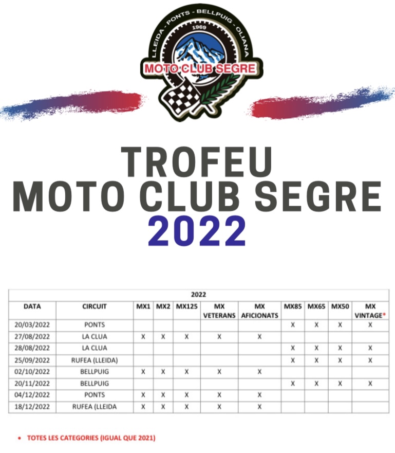 // MX TRAINING MX TRAINING SEGRE Programa d'entrenaments als nostres circuits de motocr�s. Consulta el calendari