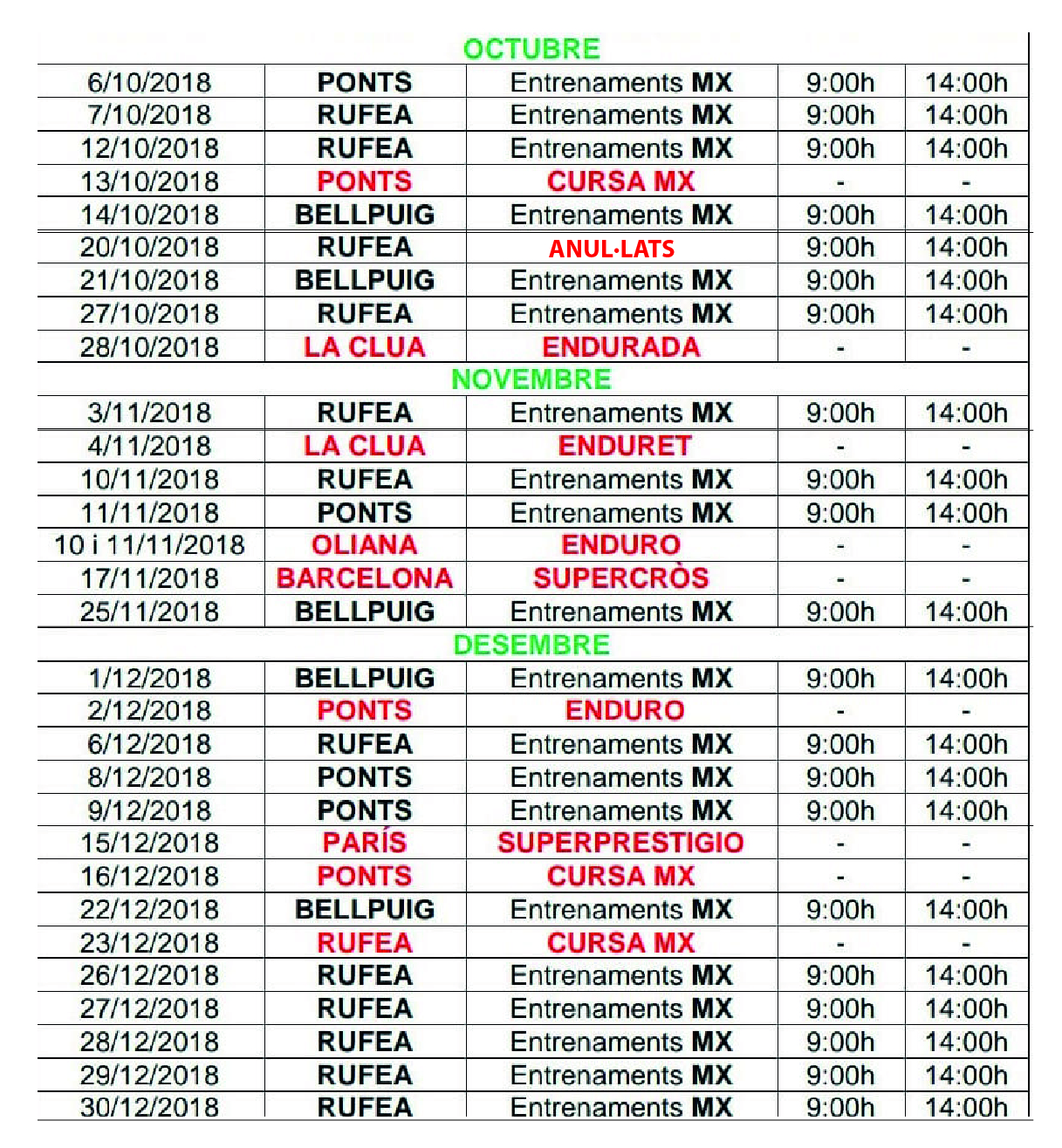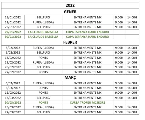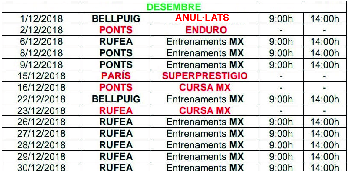 Abans de realitzar el desplaçament al circuit, trucar al telèfon de contacte per verificar la celebració dels entrenaments.